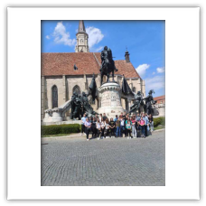 Kirándulásunk egyik állomása volt Marosvásárhely, ahol megtekintettük a belvárost, ill. a Kultúrpalotát és a Bolyai-