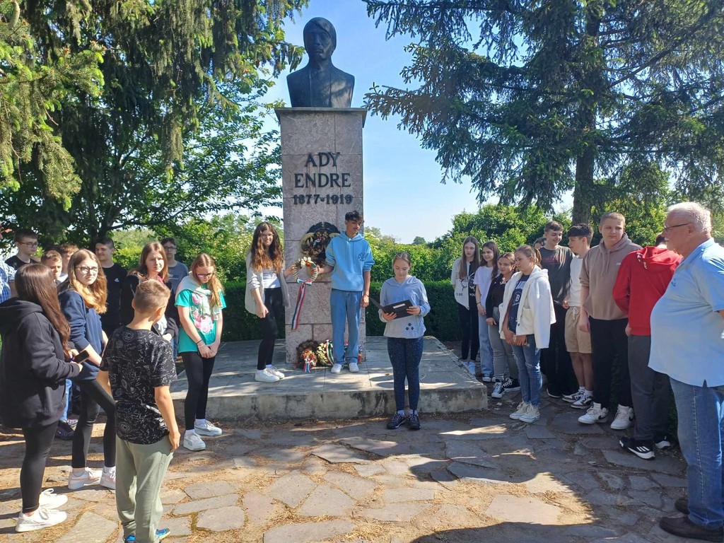 A vállaji határátkelés után első megállónk a nagykárolyi Károlyi kastély volt. Ezután az Ady Endréhez kapcsolódó emlékhelyek felkeresése következett. Érdmindszenten, Tasnádon és Zilahon is koszorúval, verssel tisztelegtünk a magyar irodalom egyik legkiválóbb költője előtt. Következő megállónk Kolozsvár volt, ahol meglátogattuk a Farkas utcai Református Templomot. Nem maradhatott ki híres királyunk Hunyadi Mátyás szobra és szülőháza sem. Tordán megemlékeztünk II. Rákóczi Ferencről majd megtekintettük a Tordai-